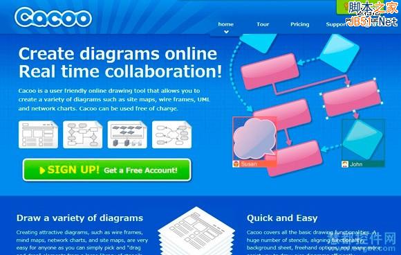 这款工具支持22种语言,适用于全球大多数用户。支持实时团队协作,用户可以同时在线使用这款原型工具。运用它可以制作多种图表,例如:site maps, wire frames, UML和网络图表等。